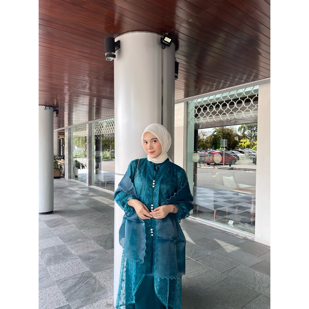 Ready Stock Clarissa Set Kebaya Emerald Green Raya Series