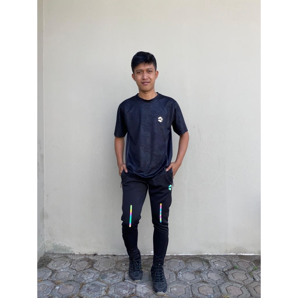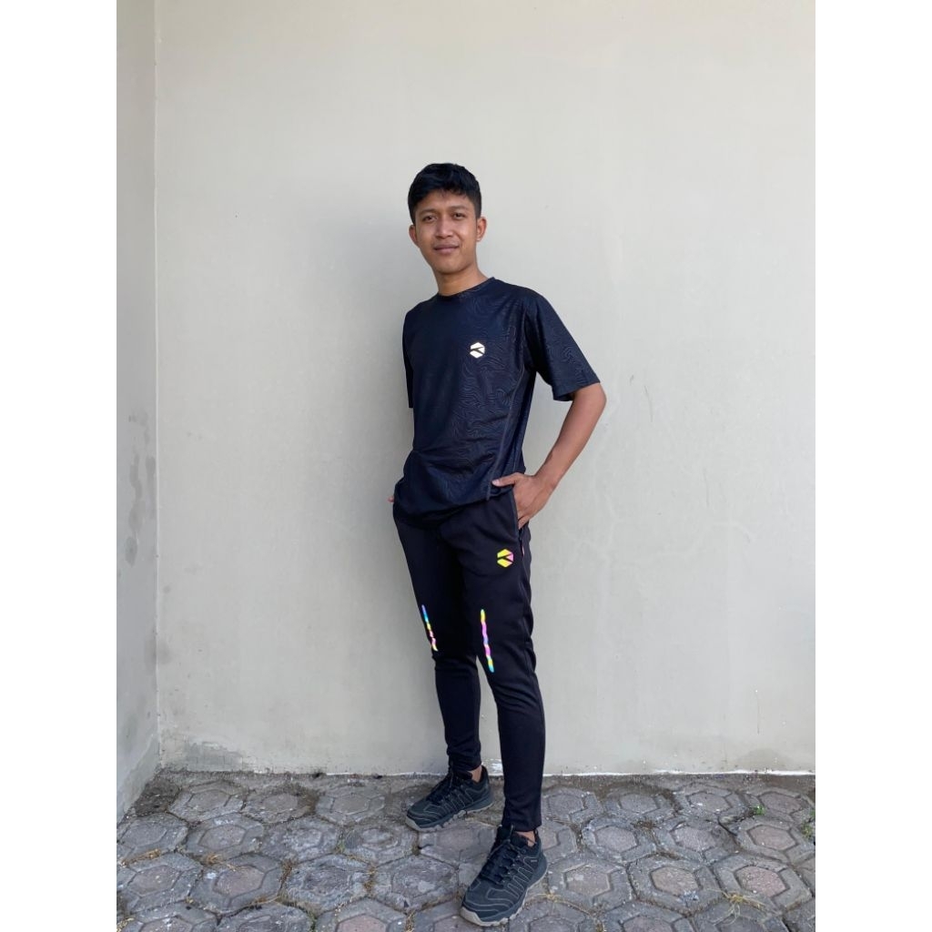 Celana Panjang Olahraga Unisex Training Jogger Warna Hitam Bahan Elastis Tebal