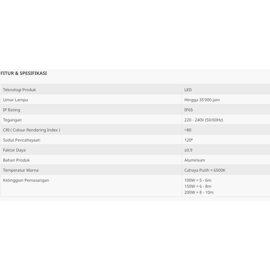 [GARANSI 1THN] HANNOCHS LAMPU LED HighBay Satelite 200W | Lampu Proyek & Industri, Hemat Energi, IP65, Sudut Pencahayaan 120° Lampu Pabrik Plafon Tinggi
