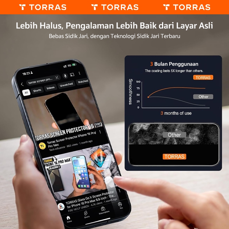 Torras Tempered Glass Ultra Clear Iphone 17/16/15/14/13 Pro Max Anti Gores Spy Hd Full Tanpa List Hitam