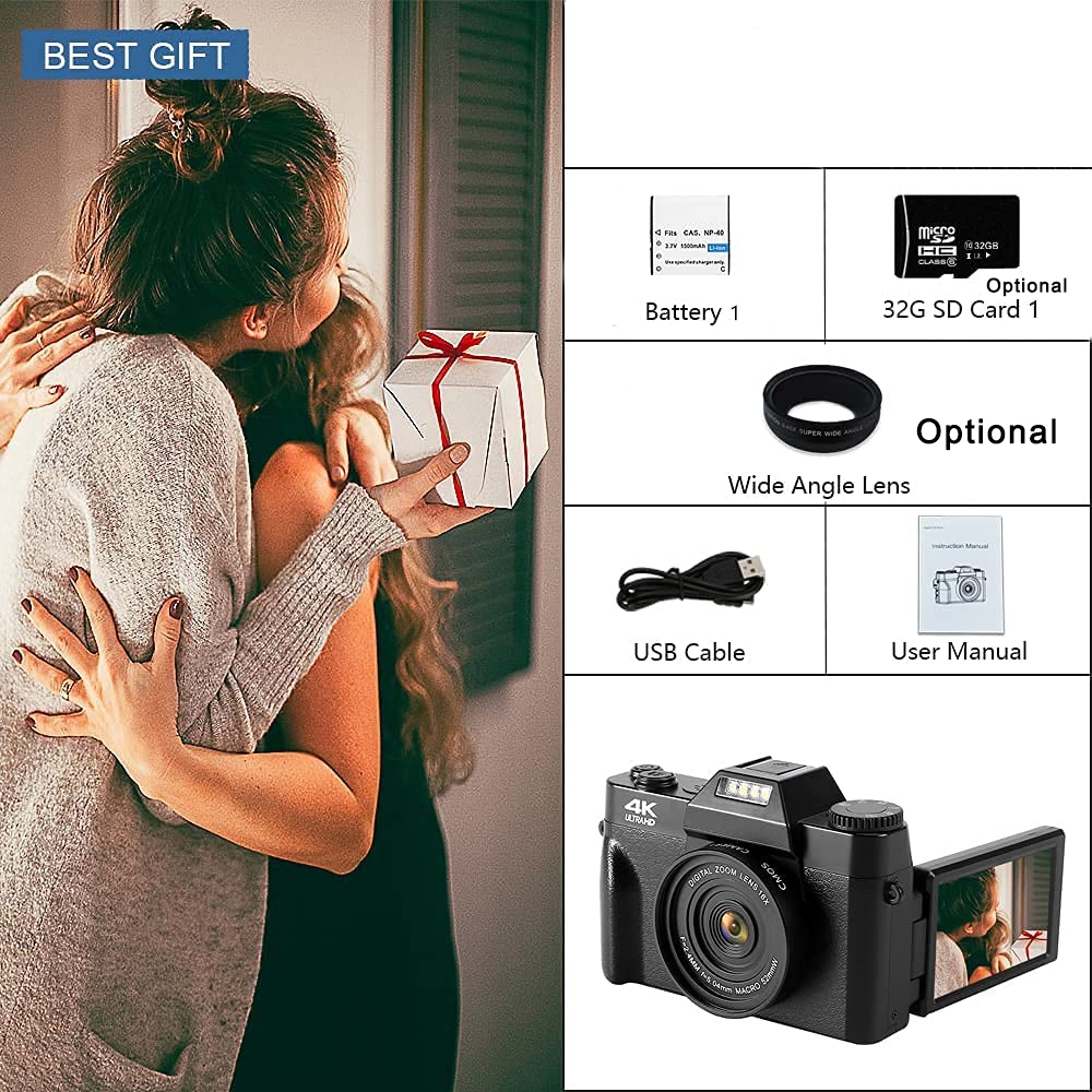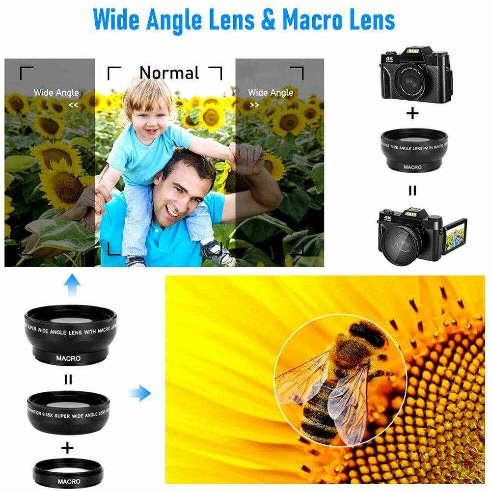 EKLEVA Digital Kamera 48MP 4K Vlogging untuk YouTube 30FPS WIFI 16X Zoom Kamera Video Camcorder