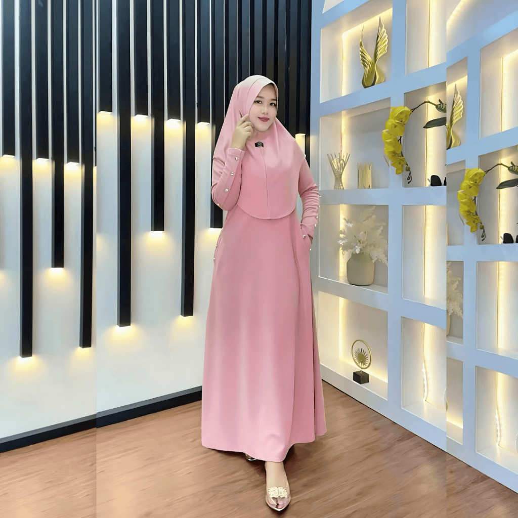 MR Clothing-Gamis amara set Hijab bahan Knit premium Wanita Muslim Syar'i Mewah Busui Friendly Kancing Nyaman