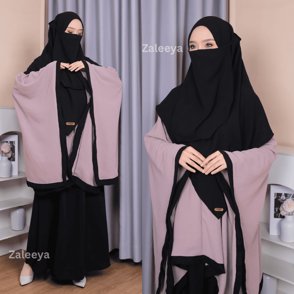 Zahira Gamis Syari Crinkle Premium One Set (Cadar + Pashmina + Rok + Tunik)