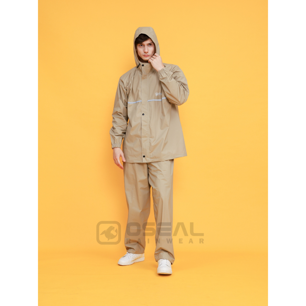 Jas Hujan OSEAL Full Seal Raincoat Mantel Pria Wanita Dewasa Shine Series Mocca