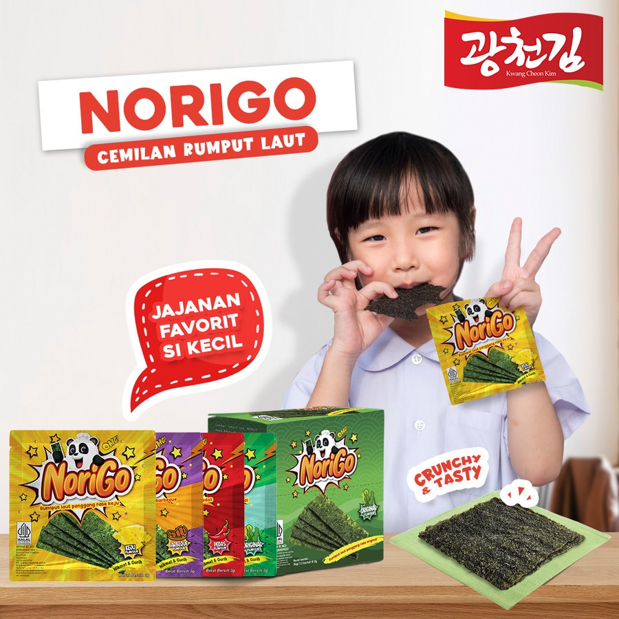 Norigo 1 Dus Free 10 Pcs / Nori Sachet Seaweed Snack 3G Rumput Laut Halal