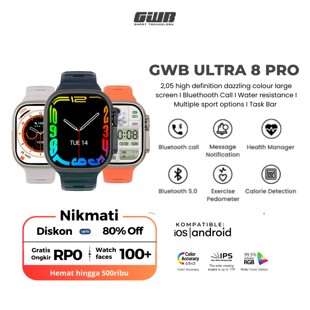 [TERBARU] GWB ULTRA Pro 2.2 inch Display | Mini-Game | GPS Track | NFC Door Access | Menghitung Kalori | Berbagai Jenis Olahraga | Pendeteksi Kesehatan | Detak Jantung | Smartwatch Bergaransi