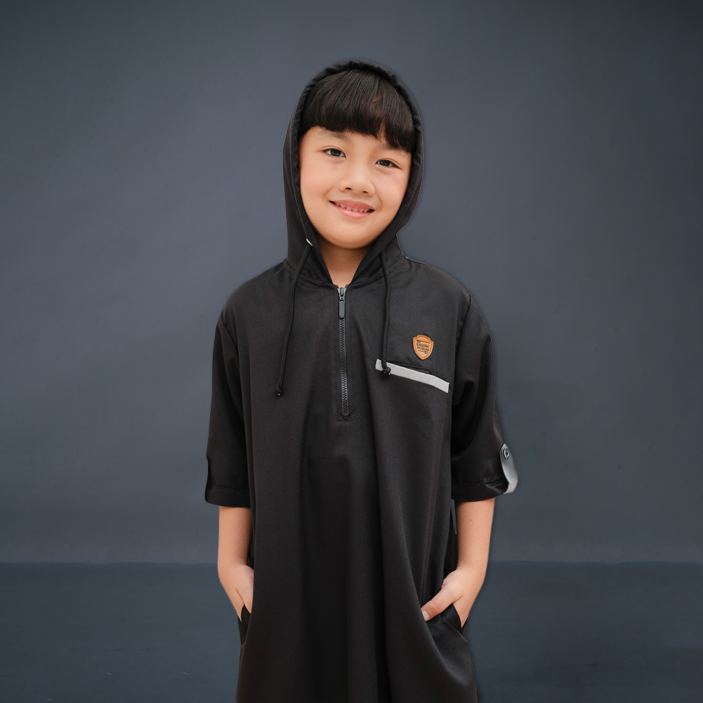 Kawan Muslim - Jubah Gamis Hoodie Anak Laki Laki Lengan Pendek Premium Terbaru Bahan Adem