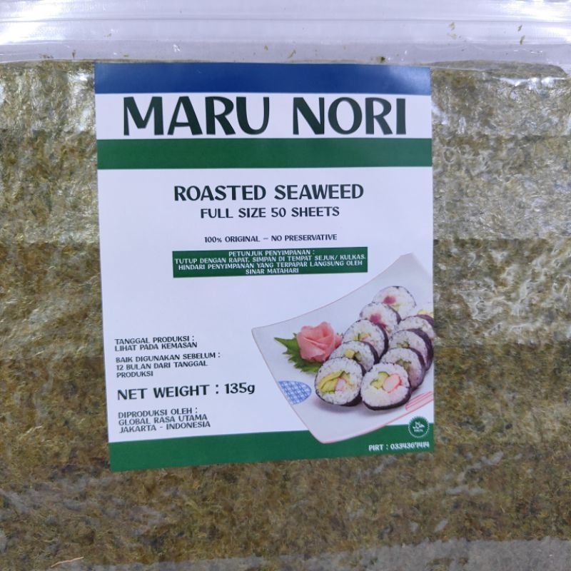Maru Sushi Nori 50 Lembar Seaweed Rumput Laut Panggang Nori Sushi Roll Halal