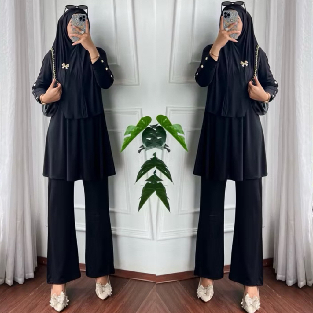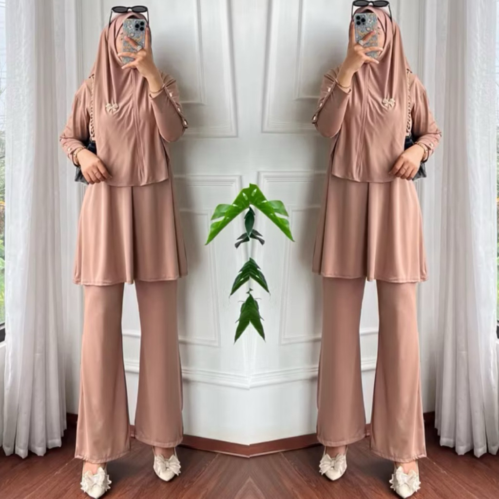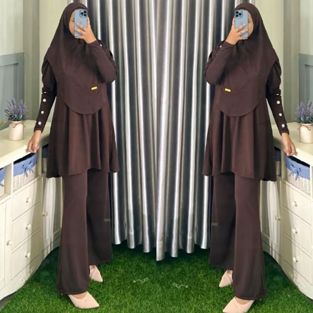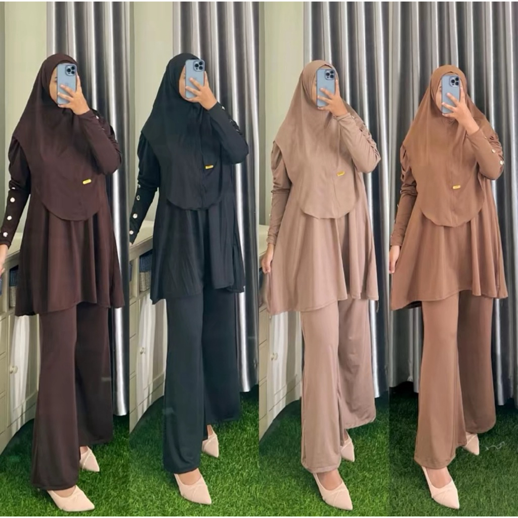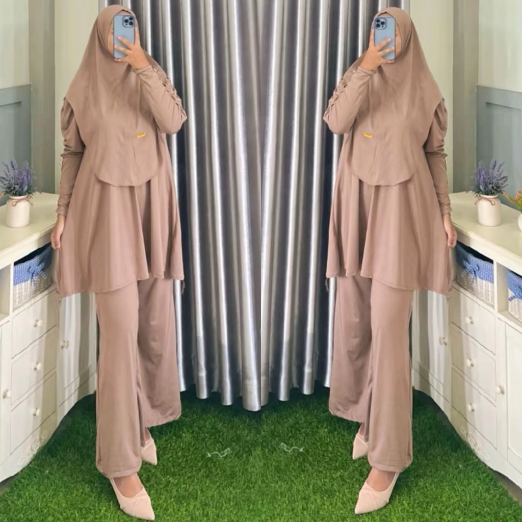 Anissa Setelan Tunik Free Hijab/ 3 In 1 Oneset/Jersey Premium Setelan Wanita Hijab Celana Semi Cutbray