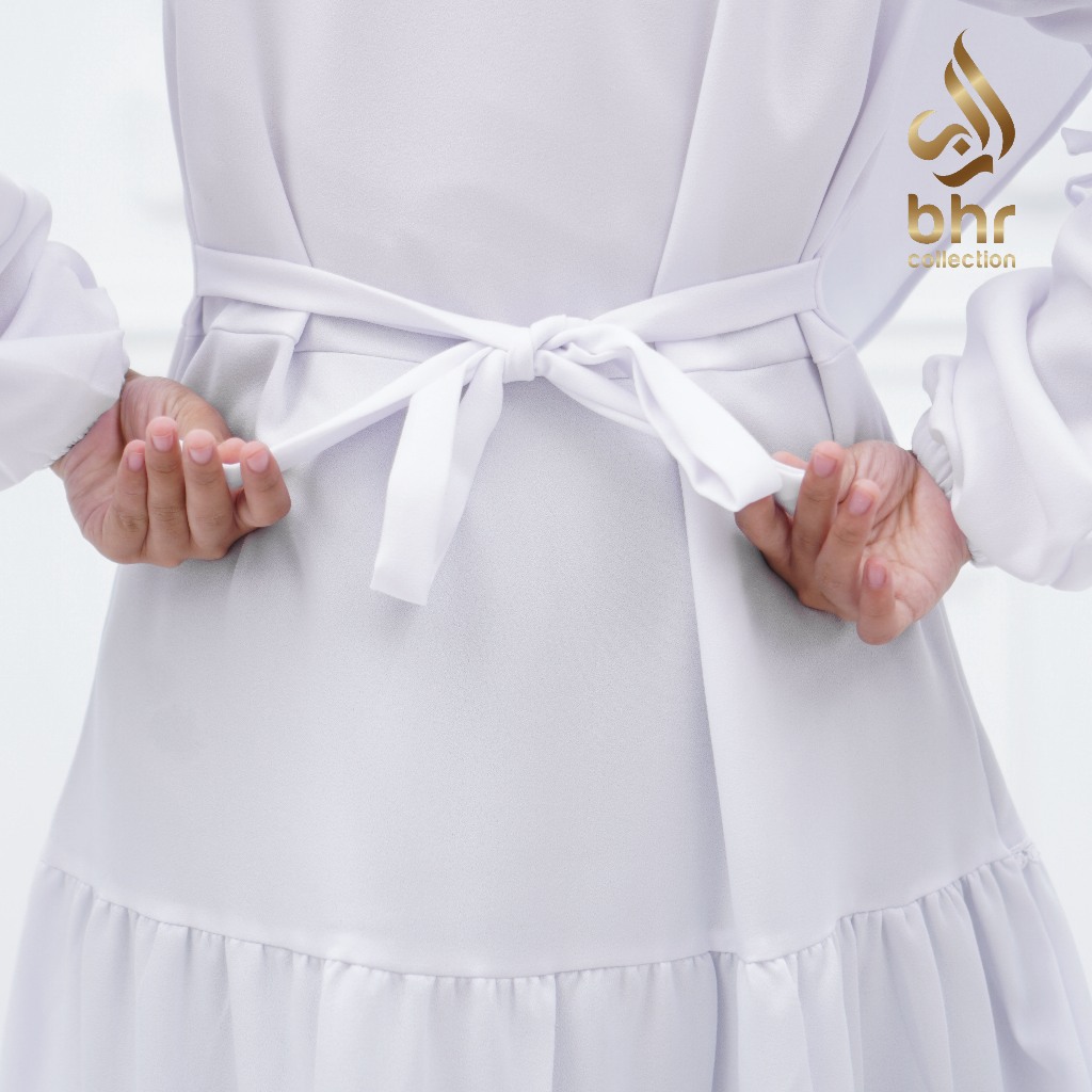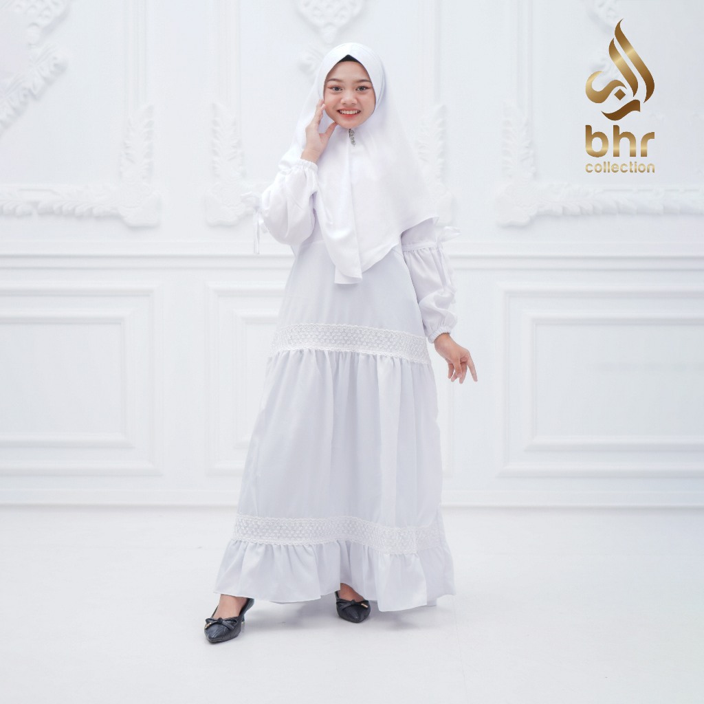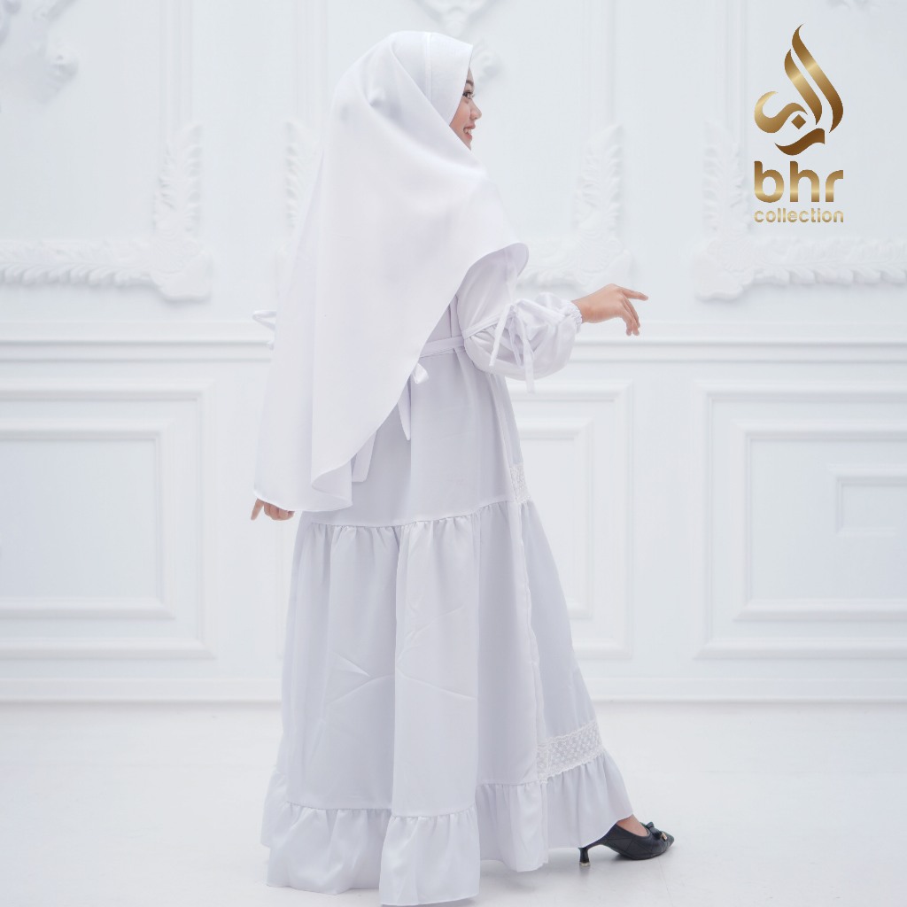 BHR collection Stelan Gamis Anak Manasik Warna Putih Variasi Renda Besar Usia 4 Tahun sampai 14 Tahun