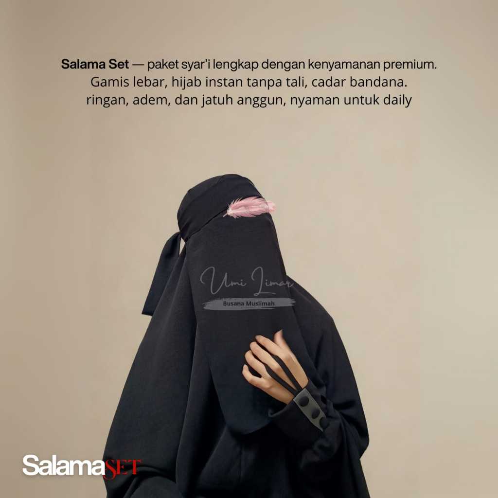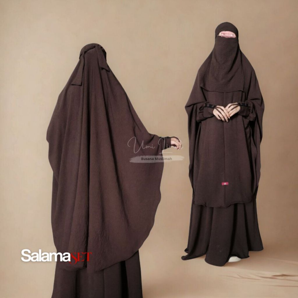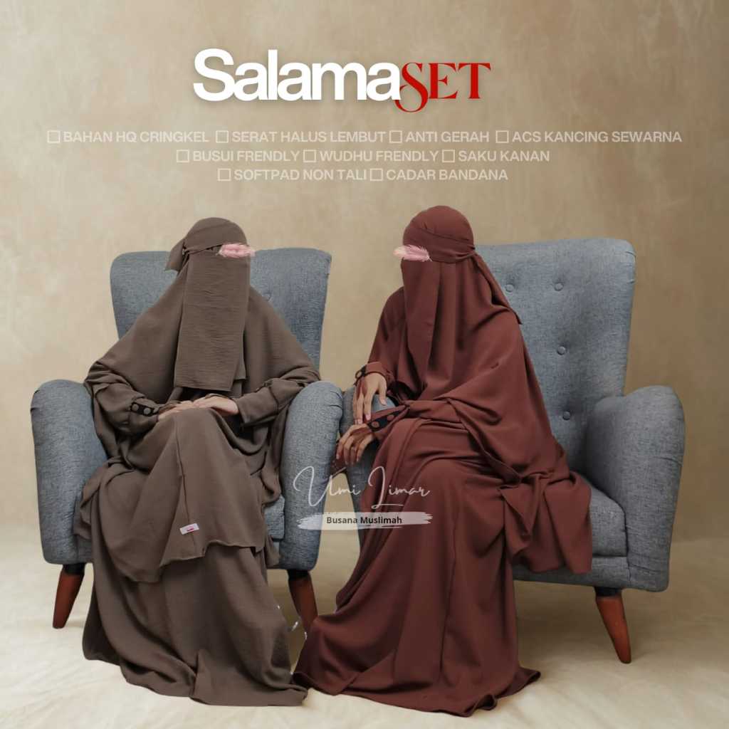 SalamaSET Abaya Set Kerudung Cadar Muslim Syari'i Bahan HQ Cringkel Haig Quality Basic Umroh Dewasa Kancing Sewarna Busu