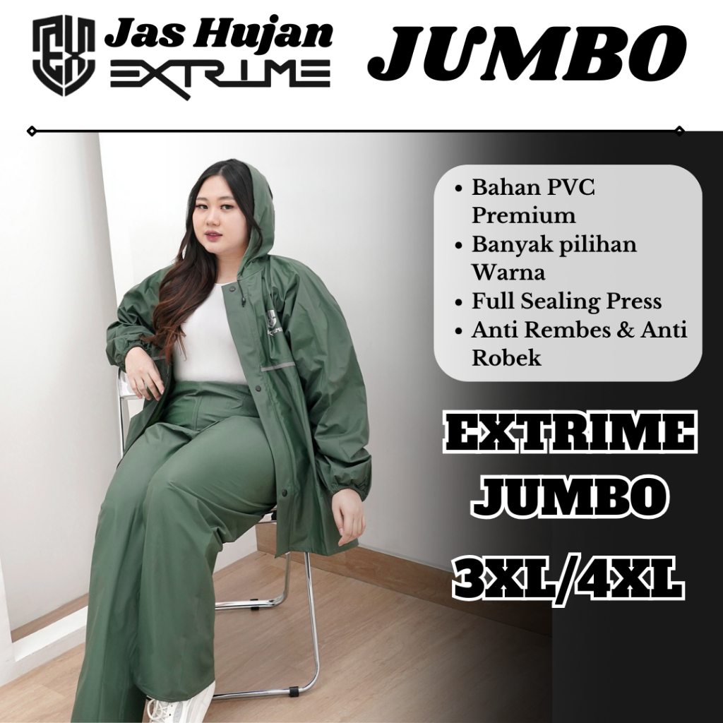 Jas Hujan Super Jumbo By Extrime Size XXXL/XXXXL Premium Bahan Tebal Full Sealing Press Anti Robek