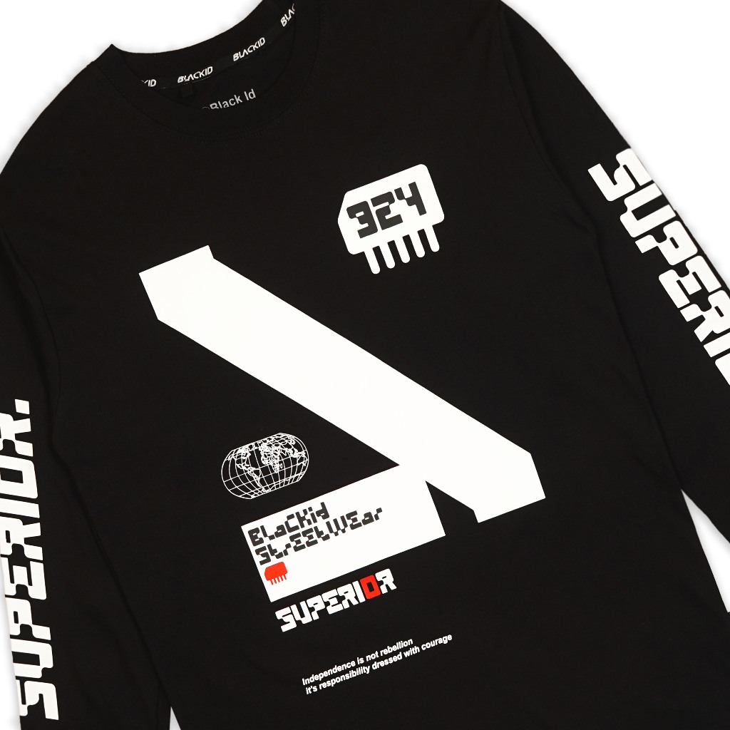 Black ID - T Shirt Katun Lengan Panjang Pria Hitam Ls Dokunet