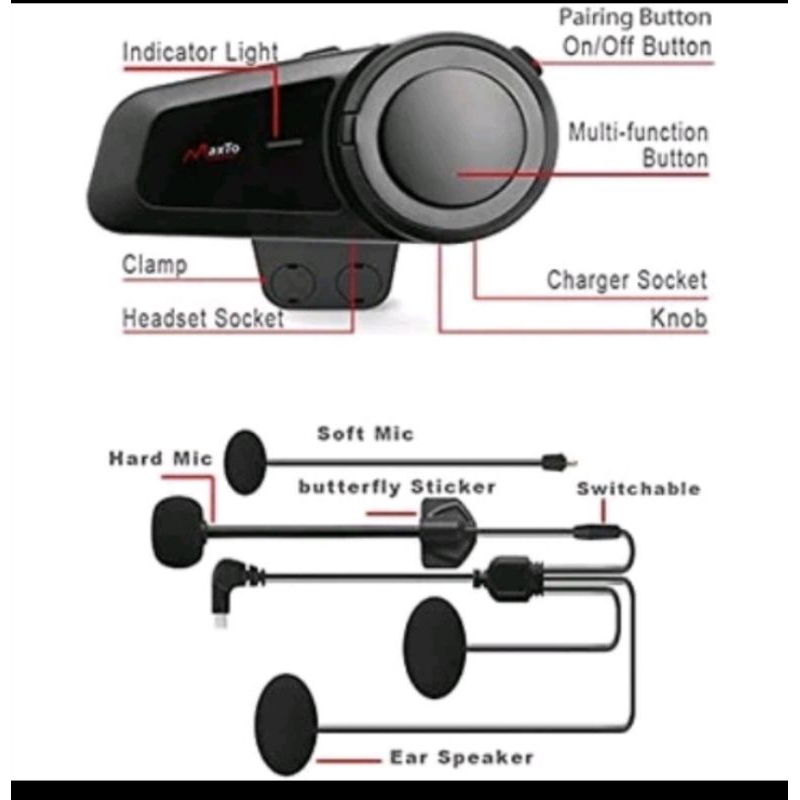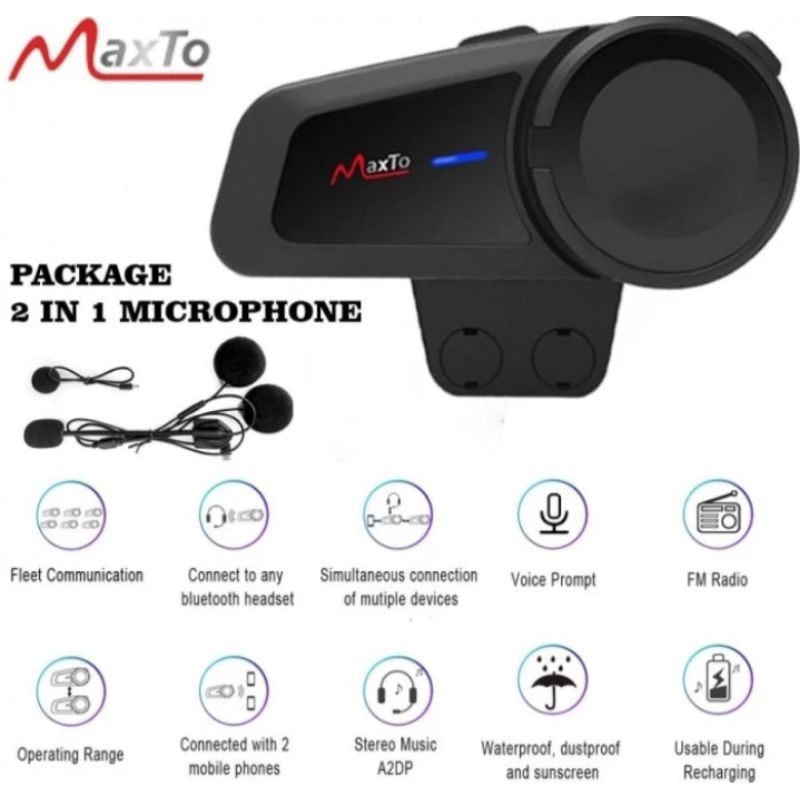 Maxto m2 Intercom bluetooth helm fm radio 6 rider