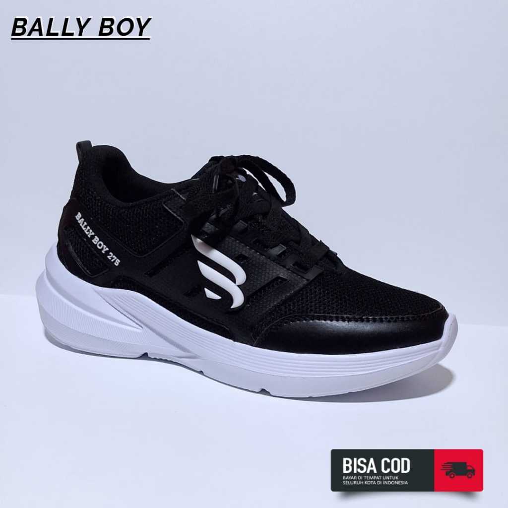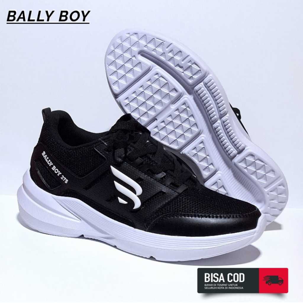 Sepatu HItam Polos Pria Full Black Sekolah / Sepatu Bally boy Sneakers Terbaru
