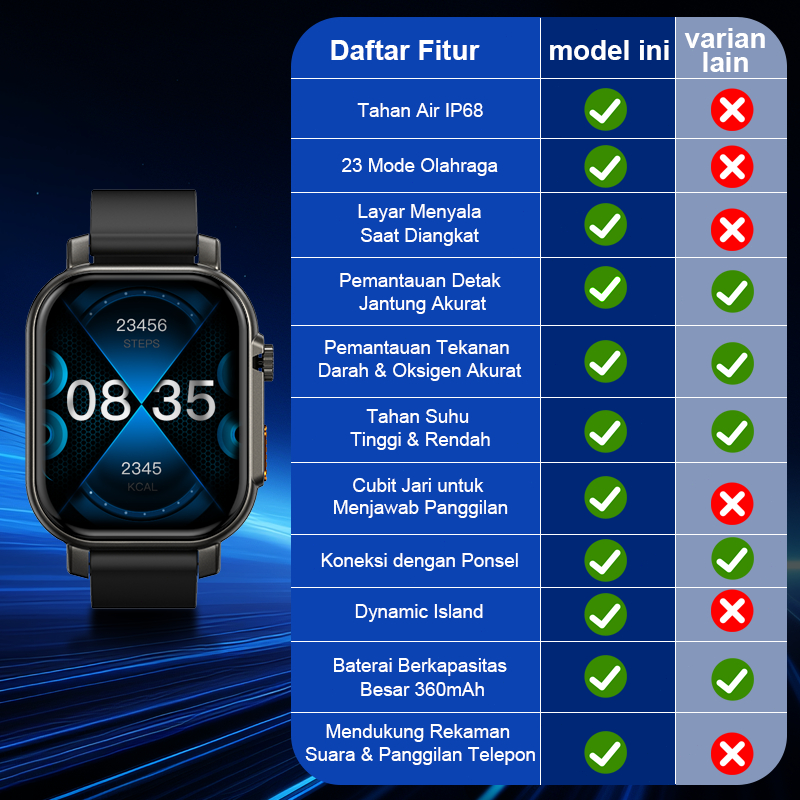 AmazeFan jam tangan smartwatch pria IP68 Waterproof HD 2.01 inch IPS Bluetooth Sports Jam Tangan