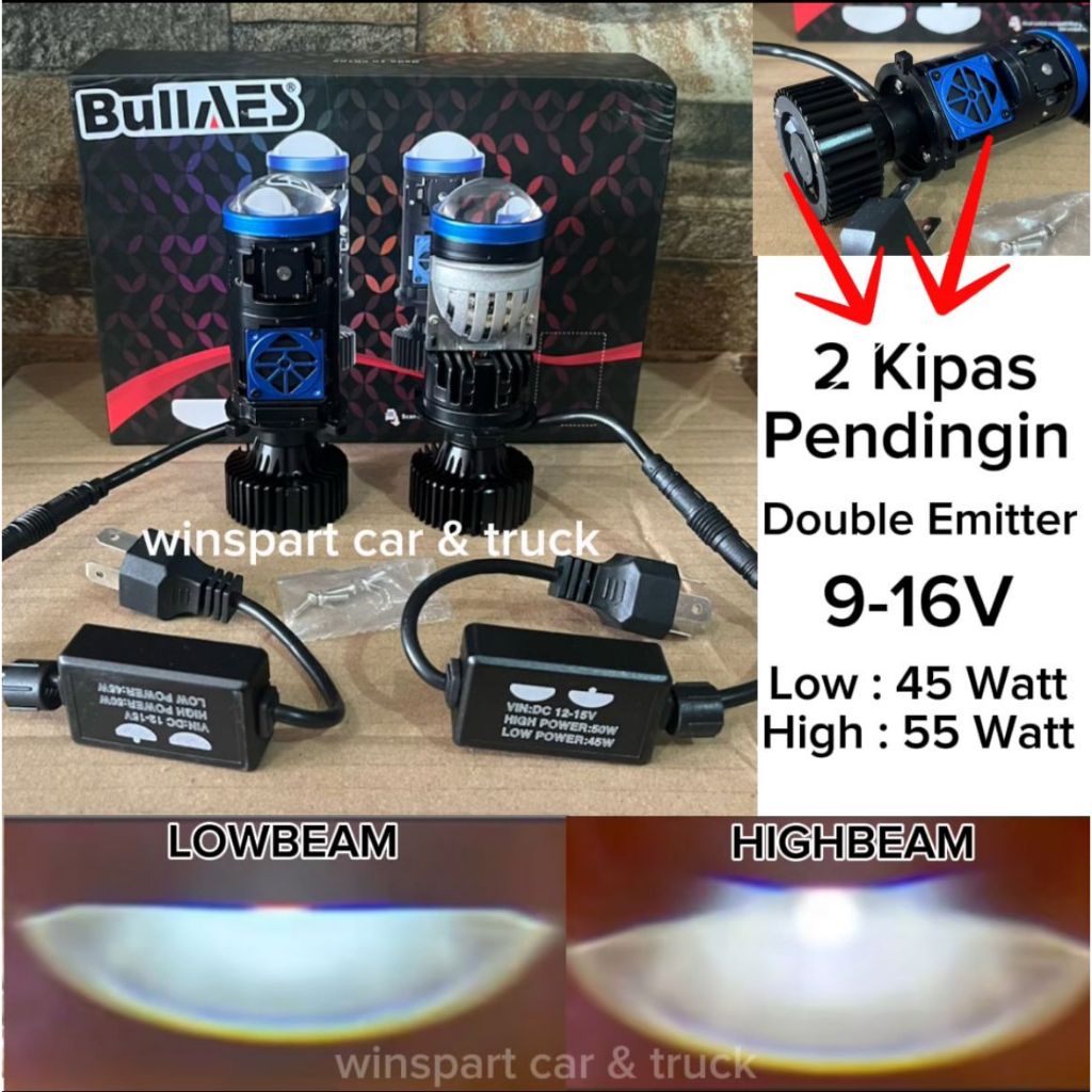 Biled Mini AES H4 Super Bullaes Double Emitter Mini Projie Laser Double Kipas Pendingin mini biled h4 bullaes 55 Watt