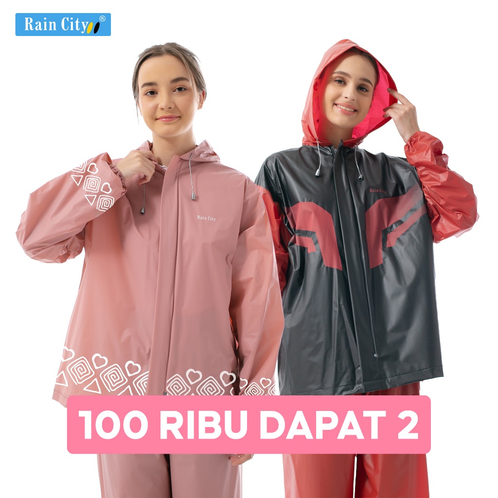 RAIN CITY Jas Hujan Setelan Elina Warna Pastel Pink Aesthetic - 70067