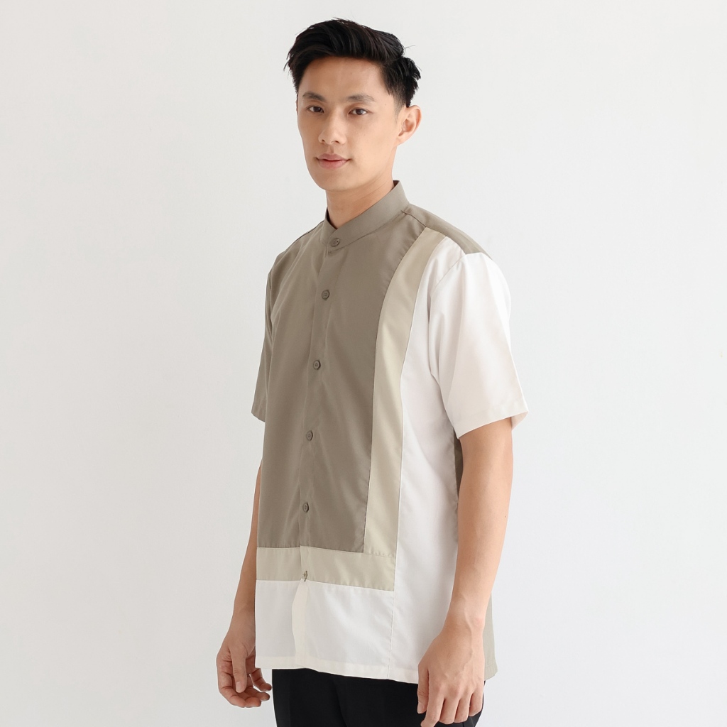Kemeja Pria Koko Lengan Pendek Premium Motif | Baju Atasan | Cassius Shirt Taupe by KINKAMI