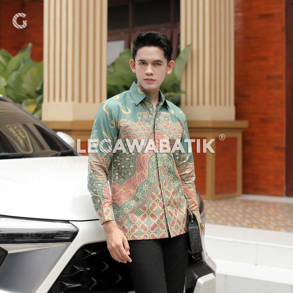 Legawabatik - Kemeja Batik Pria Premium Lapis Trikot - Motif Nawasena - Warna Hijau mint
