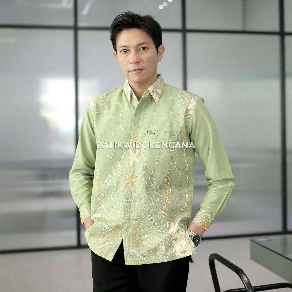 Batik Widokencana Kemeja Batik Premium Lengan Panjang Batik Kantor Motif Naraya Warna Hijau Sage