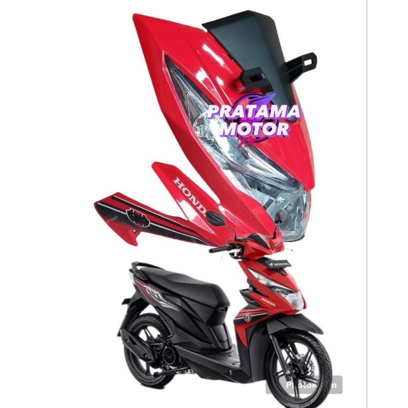 Tameng Body Depan Beat Fi Esp Eco 2016 2017 2018 2019 K81 Putih Plus Stiker Striping