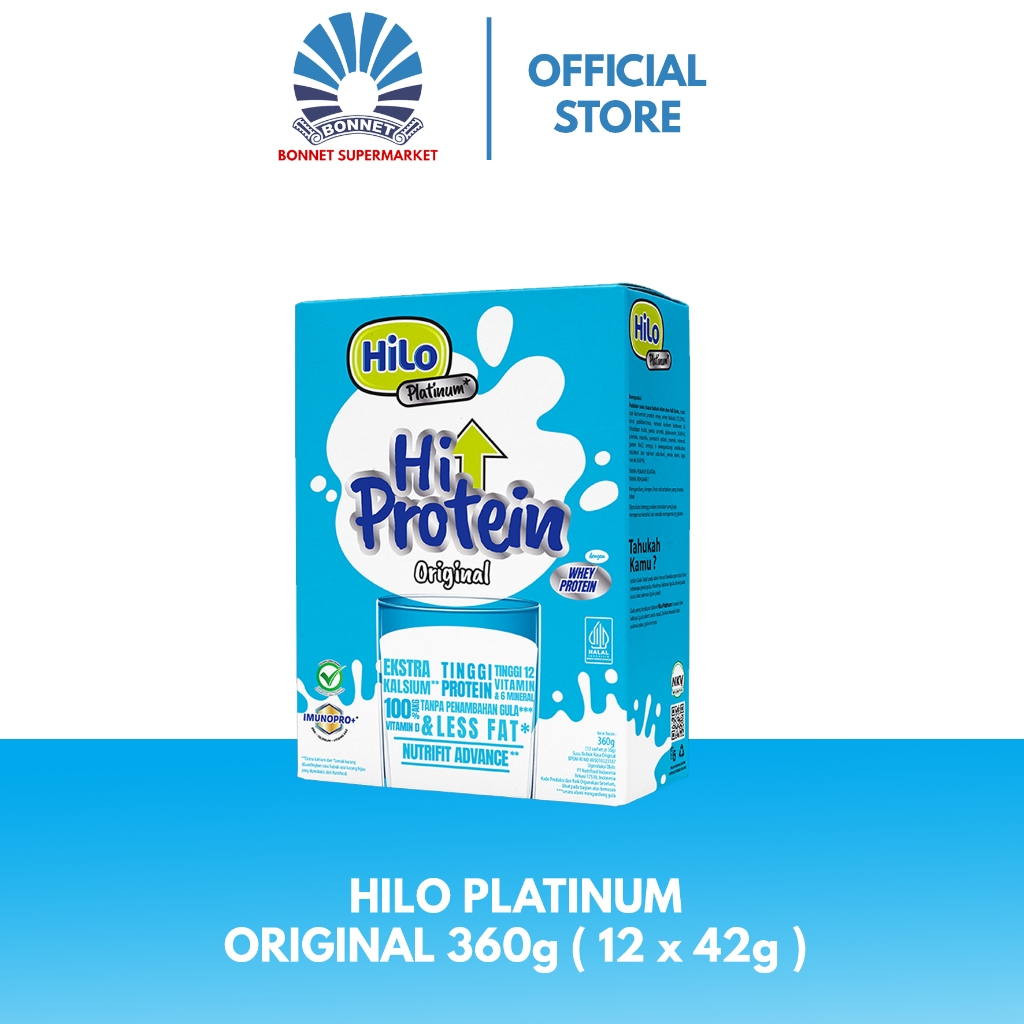 HiLo Platinum Original 360g (12 Sachet) - Susu Tinggi Kalsium Lebih Rendah Lemak