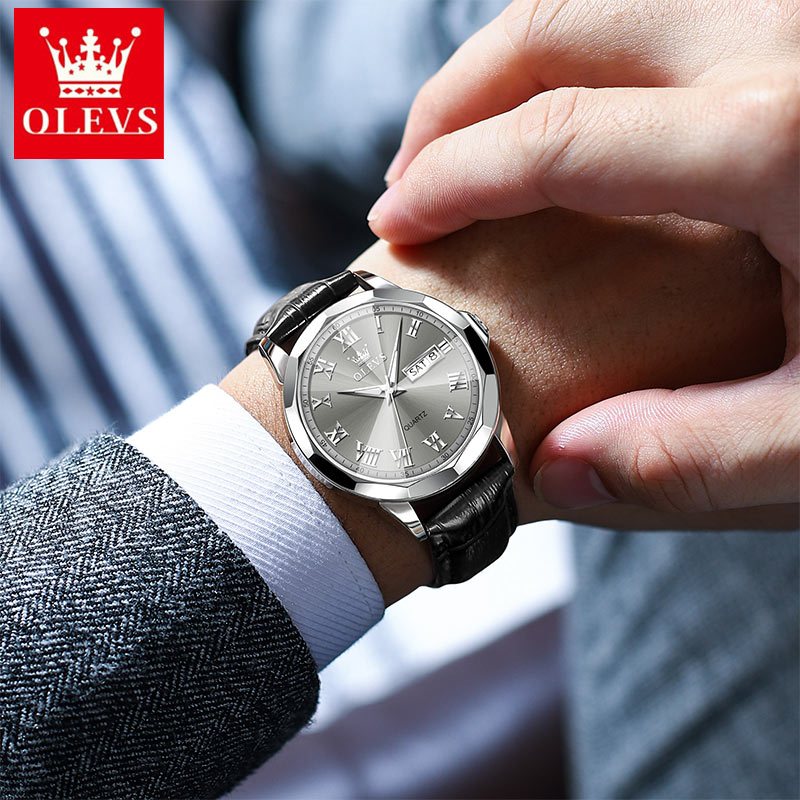 OLEVS Jam Tangan Pria Casual Anti Air Original Analog Keren Tahan Watch Men Kulit Terbaru Mewah 9990