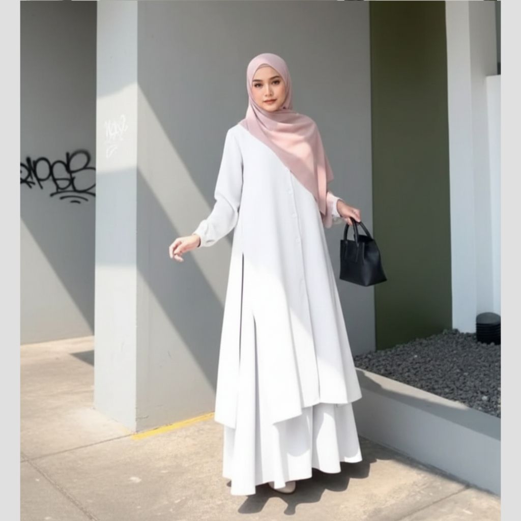 Baju Setelan One Set Rok Tunik Wanita Muslim Jumbo Kekinian Itty Creepe Premium - M L XL XXL- Busui Friendly