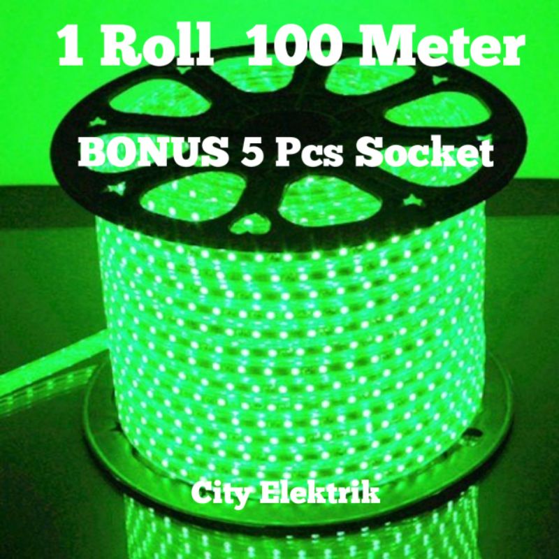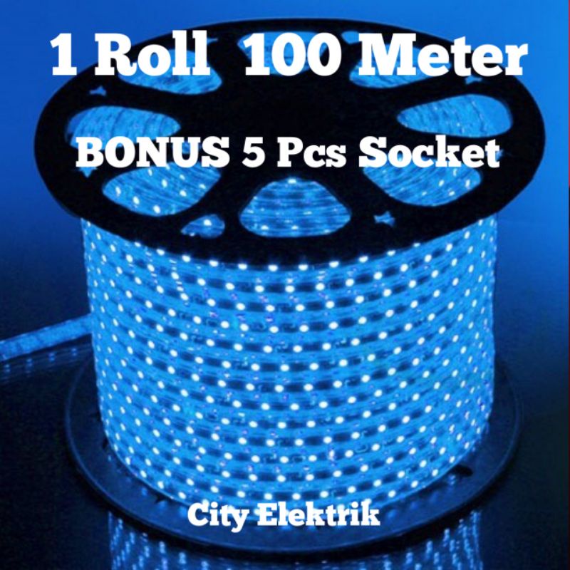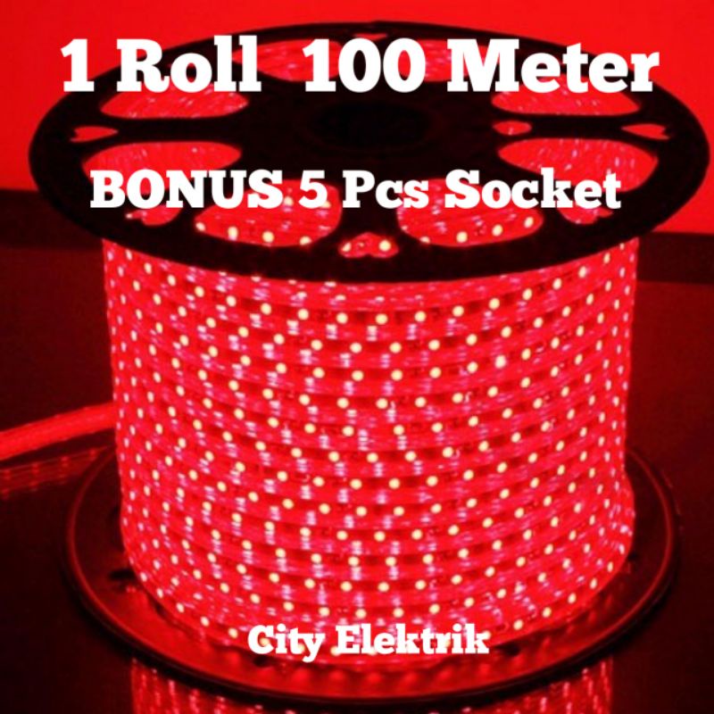LAMPU LED STRIP SELANGLED SMD 5050 AC 220V ( 1 ROLL 100 METER + BONUS 5 PCS SOCKET ) LAMPU HIAS / LAMPU PELAFON