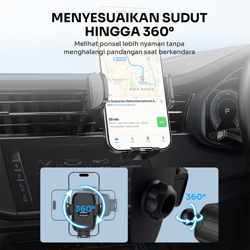 ROBOT Car Holder RT-CH21 Black Rotatable For Smartphone Backseat Car Stand Holder DUDUKAN HP MOBIL - Garansi 1 Tahun