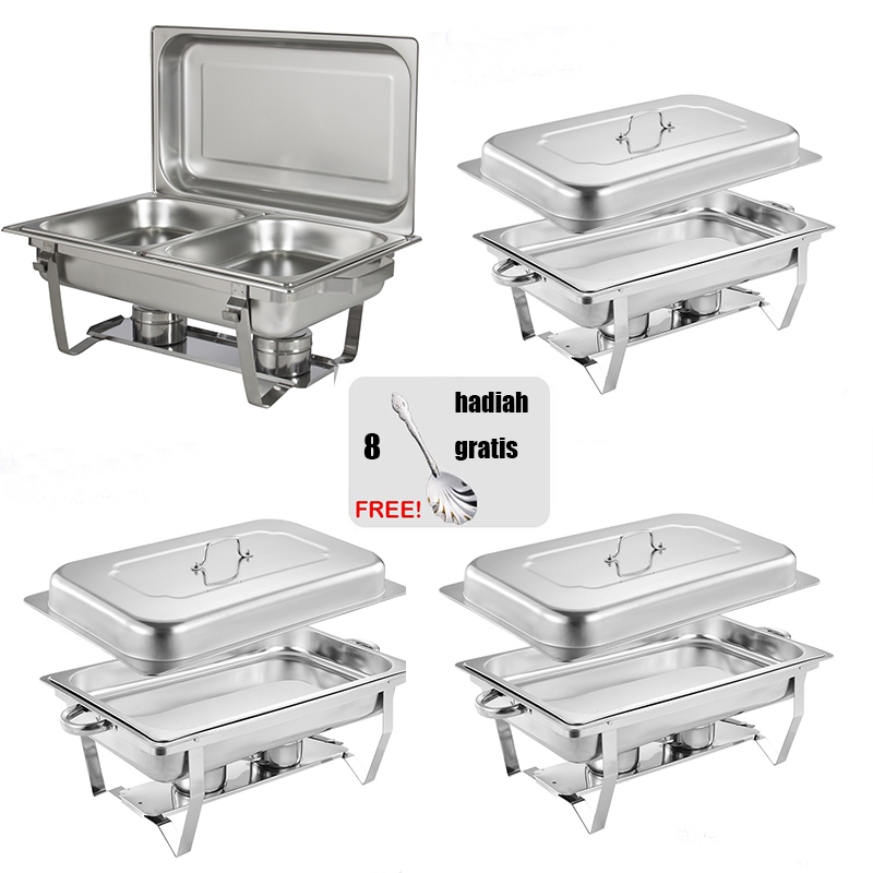 (8Hadiah gratis)Prasmanan Jumbo Paket 4 Set 12L Chafing Dish double dengan Stainless Steel kotak kotak Paket Prasmanan jumbo Paket Prasmanan jumbo bagus