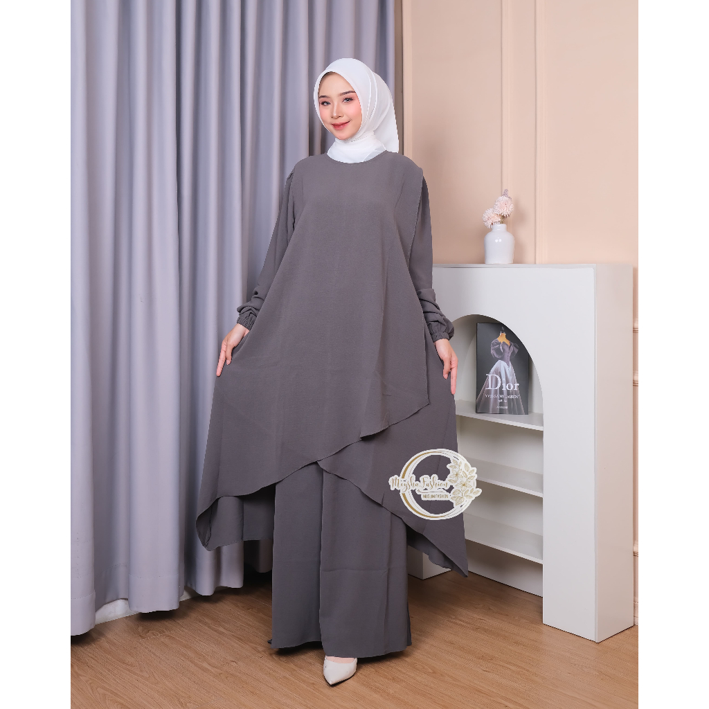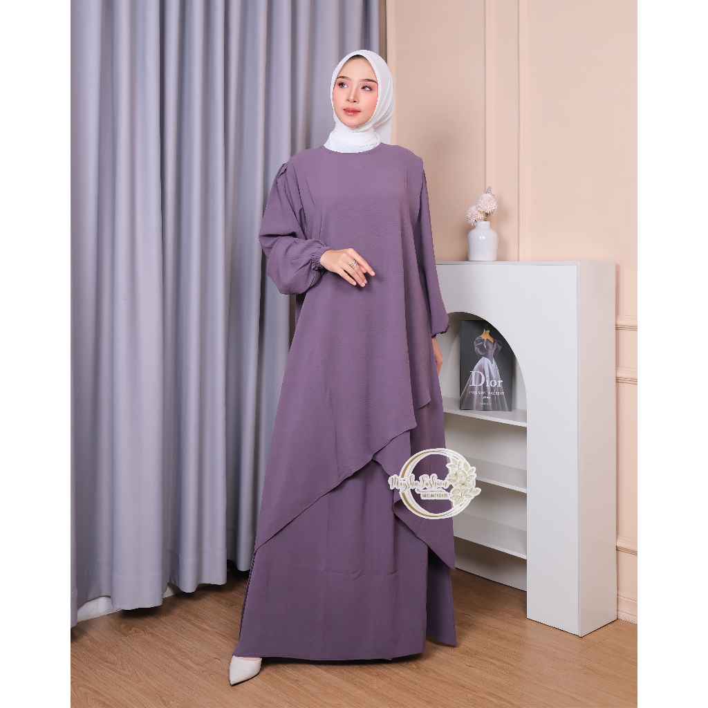 One Set Hafizah Tunik Set Rok 2 Layer Matt Cringkle Airflow Premium Abaya Set