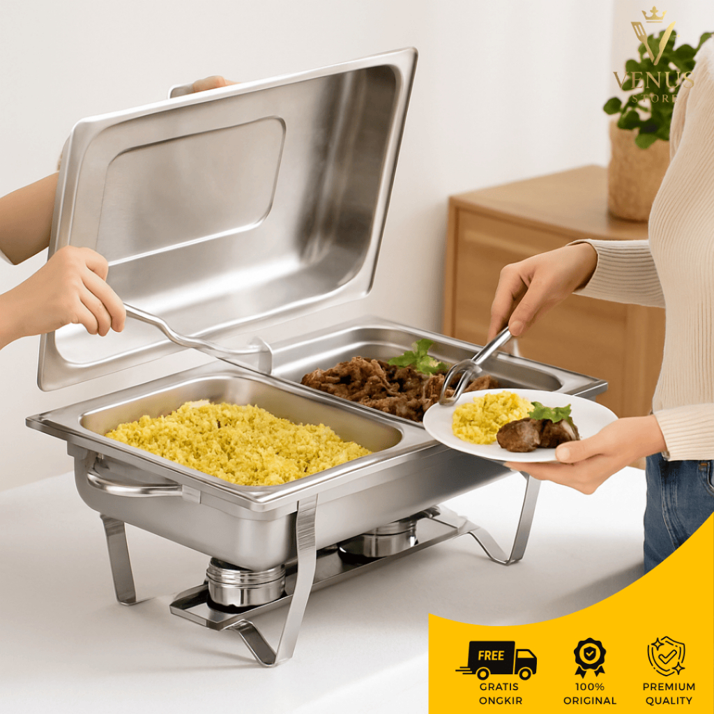 Venus Store - Chafing Dish 11L Pemanas Makanan Prasmanan Tutup Stainless Tanpa Sekat / 2 Sekat / 3 Sekat