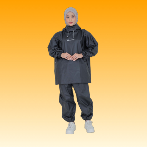 Jas Hujan Setelan Dewasa el Hoodie Pria Wanita Full Seal Press Bahan pvc Tebal Anti Rembes