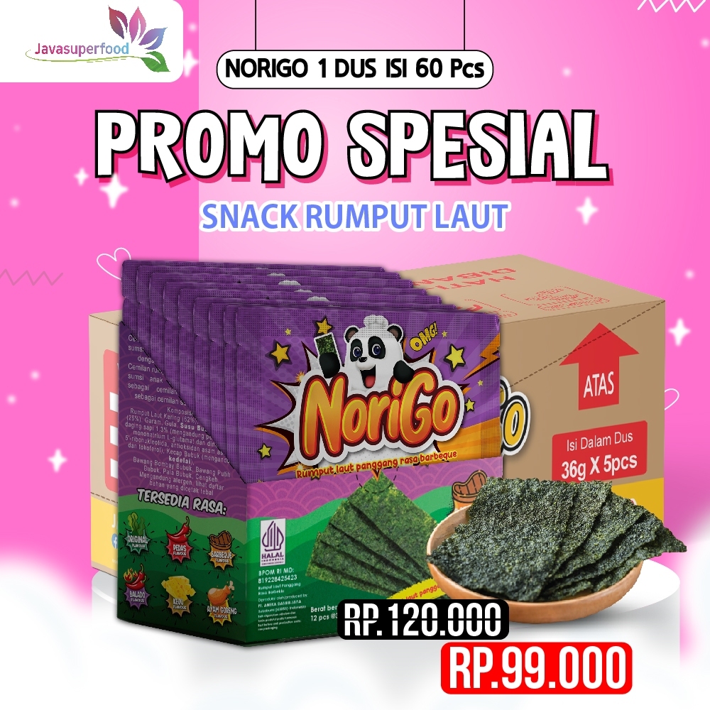Norigo Nori Bbq Sachet Seaweed Snack 3G Rumput Laut Halal Rasa Bbq