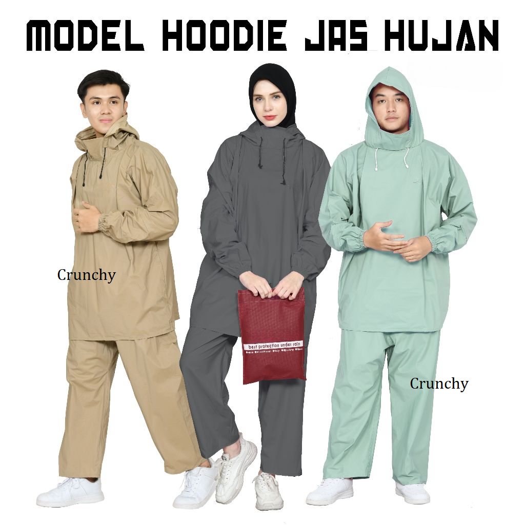 MODEL HOODIE TANPA ZIPER JAS HUJAN DEWASA PRIA WANITA ATASAN DAN BAWAHAN BAHAN TEBAL PVC 025