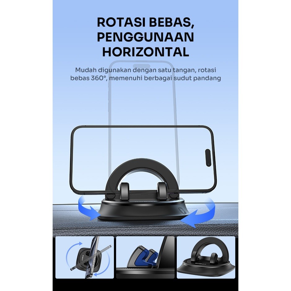 ROBOT RT-CH27 Car Holder HP Mobil Universal Rotasi 360° Ultra Strong Clamping - Garansi Resmi 1 Thn