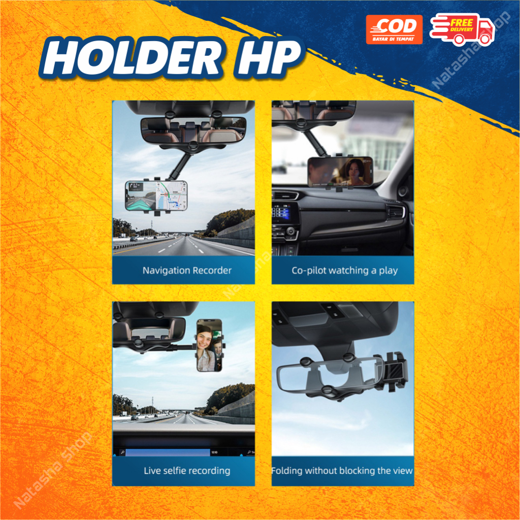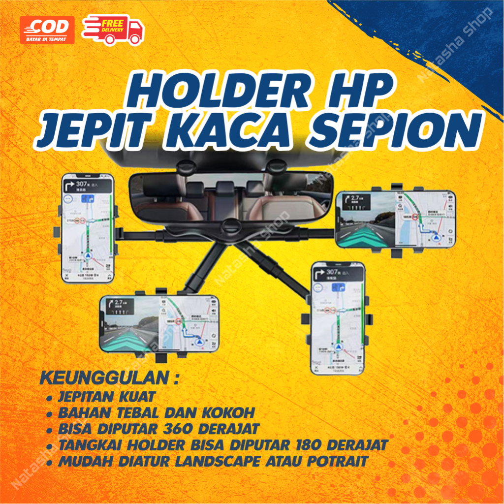 Holder HP Mobil Jepit Kaca Spion Universal 360 Derajat Cocok Semua HP