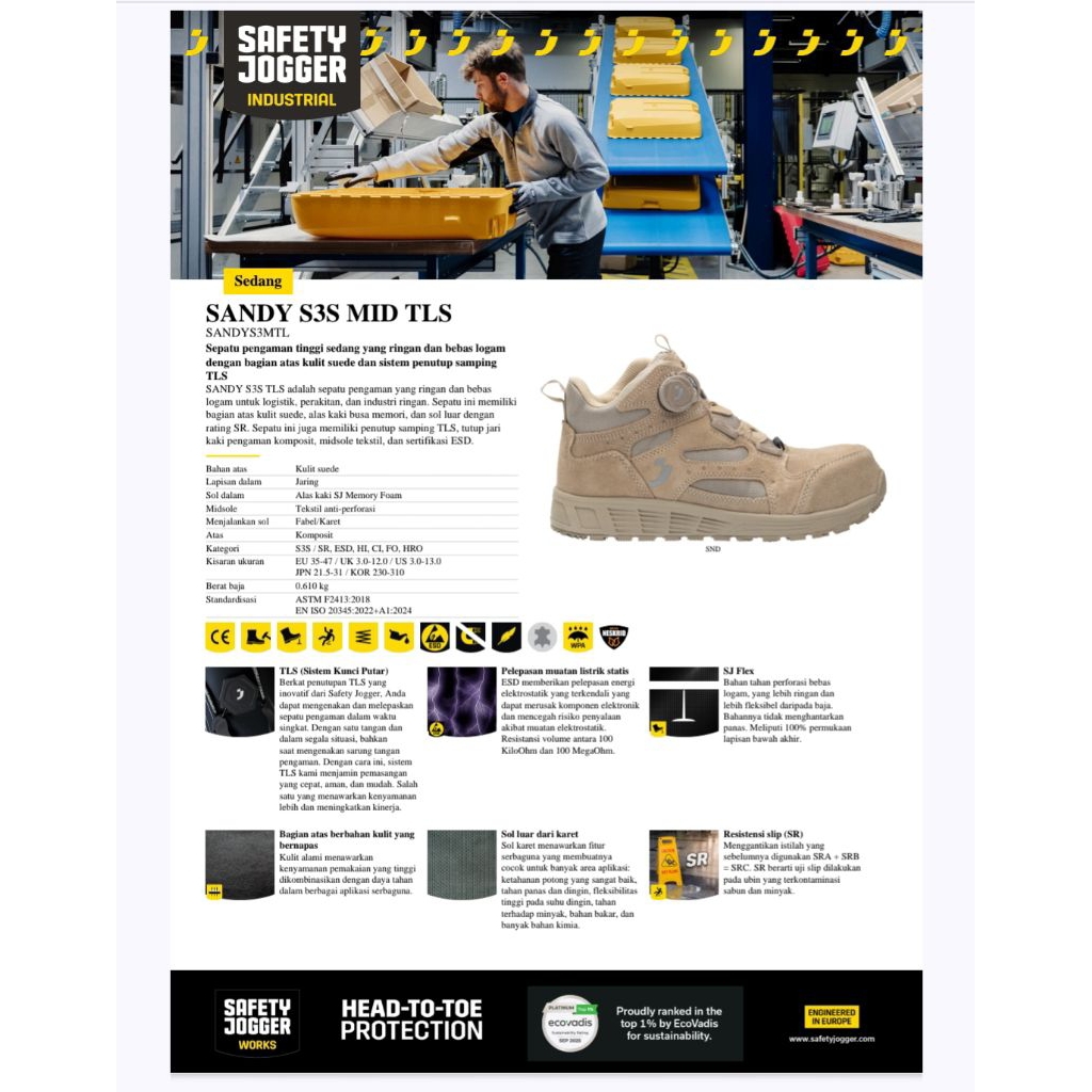 Sepatu Safety Jogger Sandy S3S Mid TLS Suede Leather