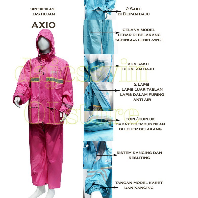 ''SPESIAL TAHUN BARU'' Jas Hujan Axio 882 - Mantel Mantol Hujan Baju Celana Silver Series Assio Asio