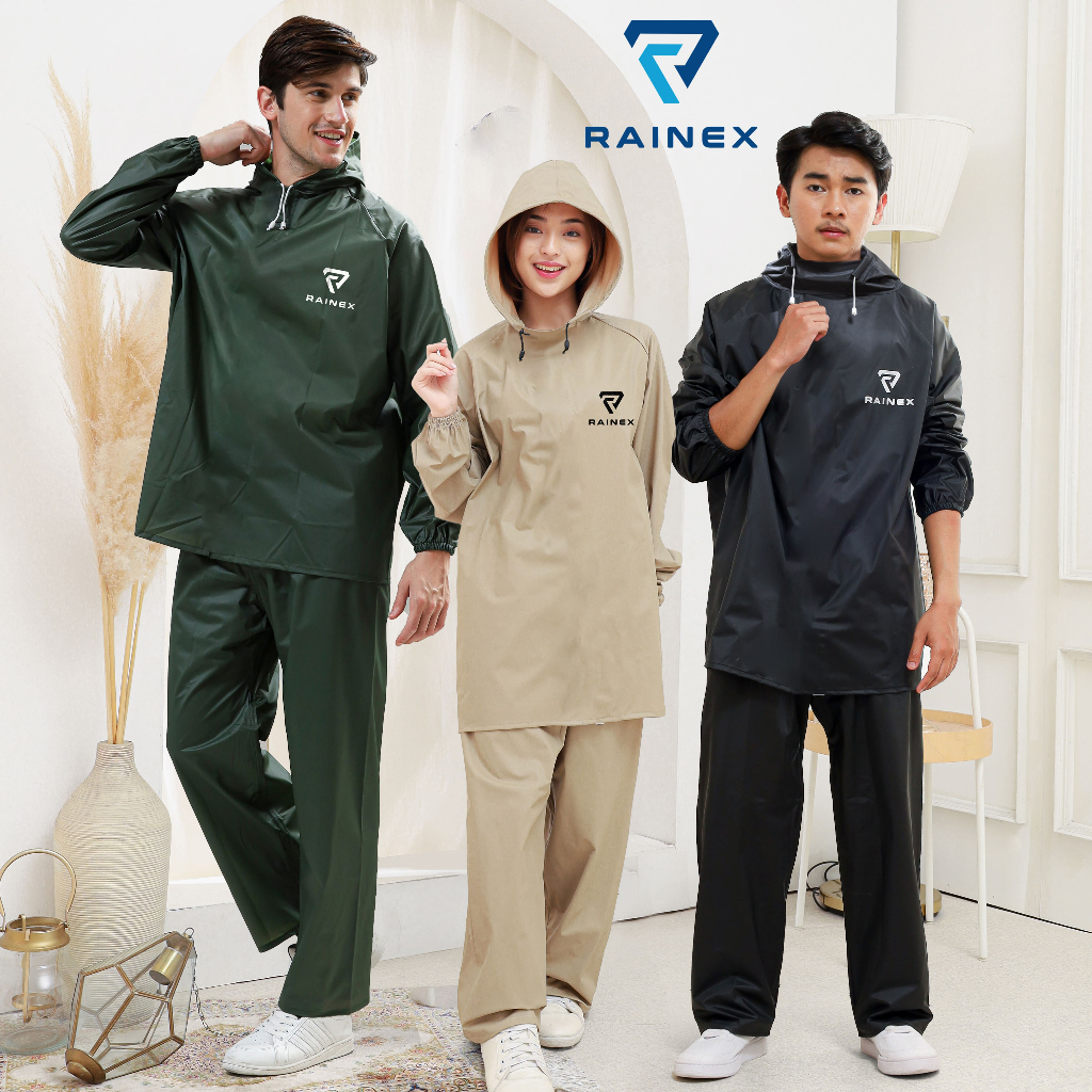 JAS HUJAN/MANTEL MODEL SETELAN HOODIE Pria & Wanita Bahan Tebal PVC Kuat Anti Rembes by RAINEX
