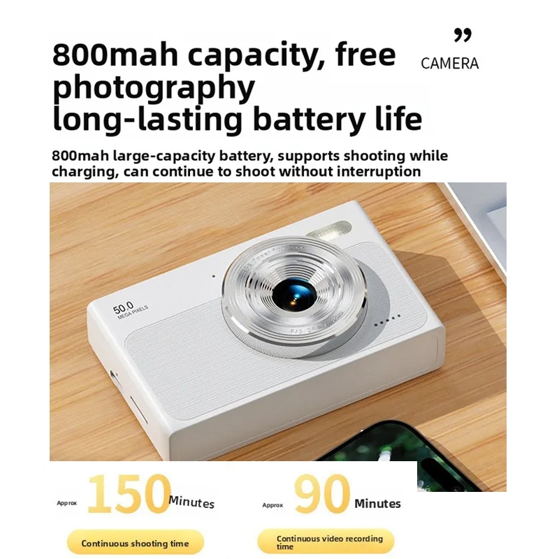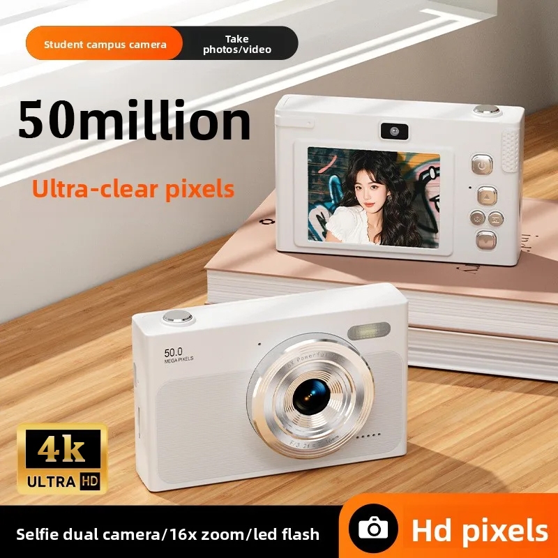 TEEKA H27 4K Mini Kamera Digital 50MP 16X Digital Zoom Digicam Kamera Pocket 4K Kamera / Camera Saku Model Retro Putih Biru Foto Dengan Kartu 64G