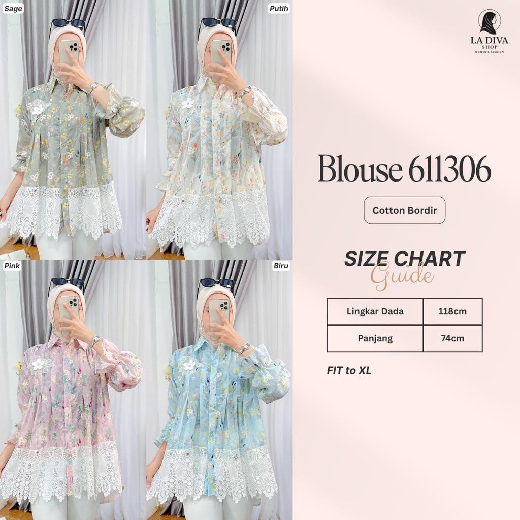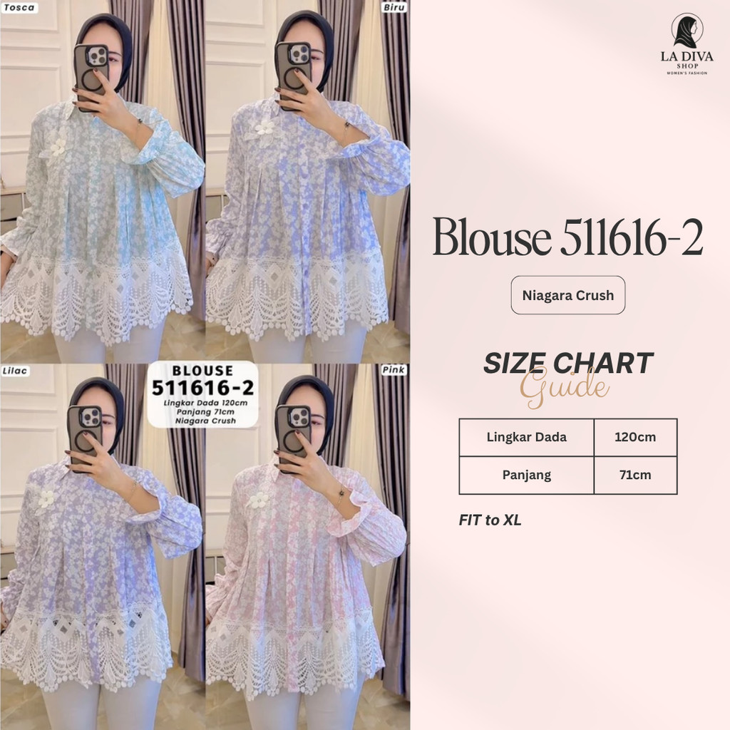 La Diva - Ayla Blouse Kombinasi Renda Elegan Busui Friendly Bahan Poplin Adem Fit To Xl - Extu Heritage 611289, 511549, 511610, 511616, 511602, 511596, 511597, 511604