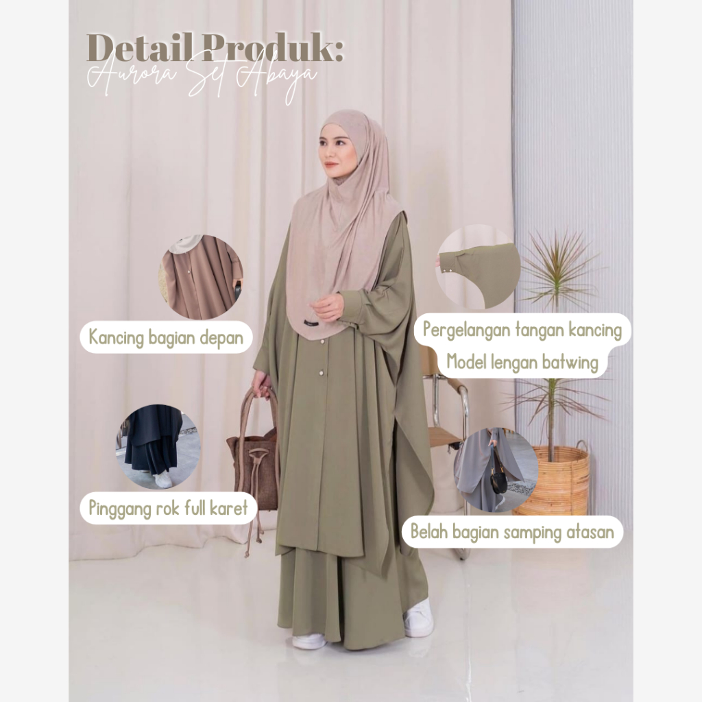 ILONASHOP Aurora Set Abaya Syar'i Oneset Tunik Batwing Wanita Baju Setelan Jumbo