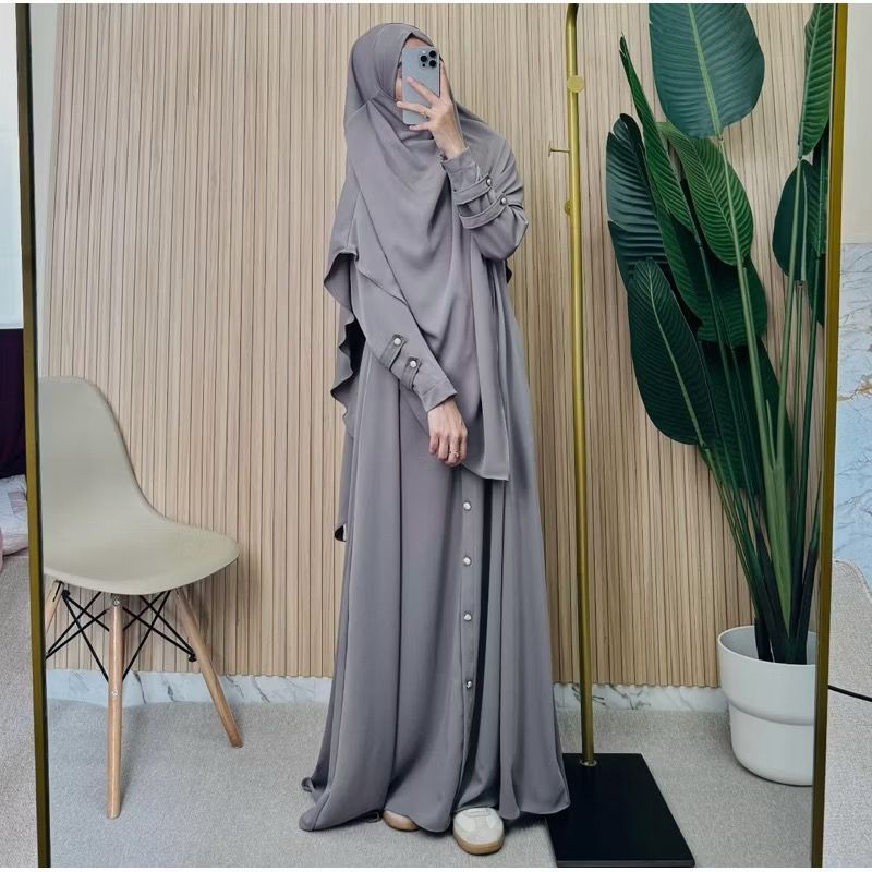 Gamis Syar'i terbaru umroh haji hitam abaya Arumi Set Khimar French Bahan Crinkel Ukuran M L XL XXL