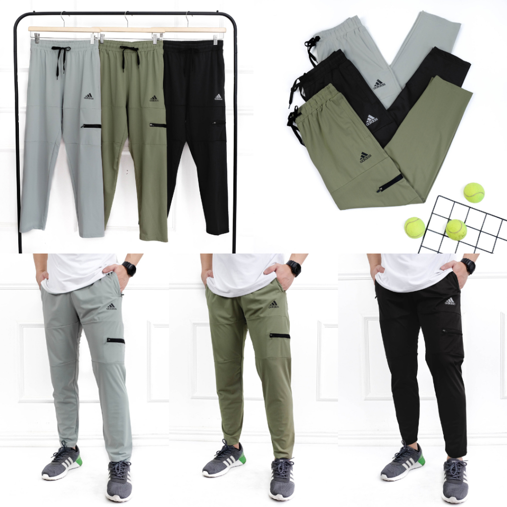Celana Training ADS Parasut Training Pants Pocket Slim Fit Celana Panjang Pria Olahraga Padel Running Gym Jogging Dry Fi