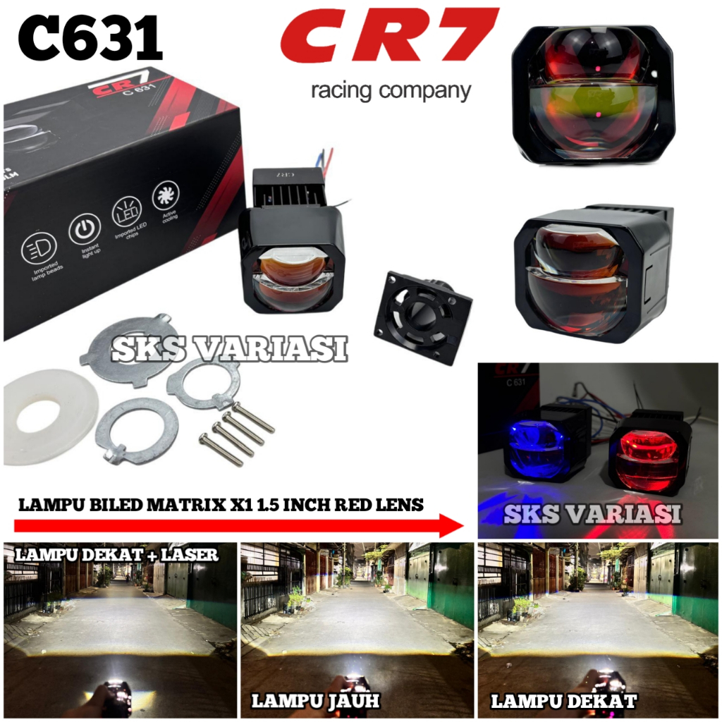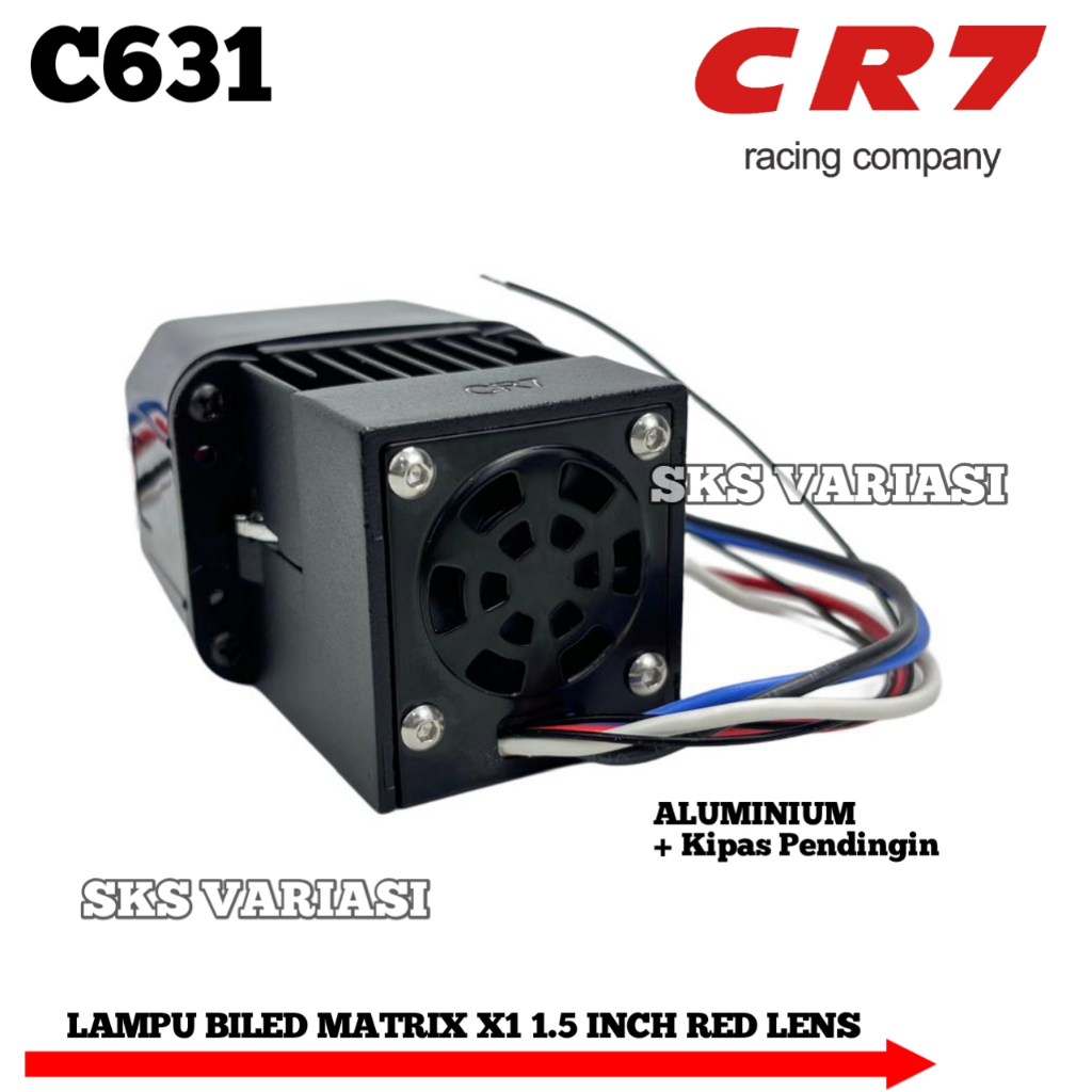 CR7 C631 - Projector Biled Matrix X1 1.5 Inch Red Lens Plus Devil Kipas High Low Flat Cut Piw Piw