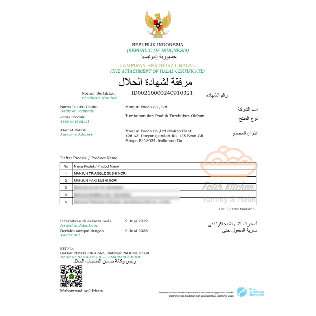 Manjun Seaweed Sushi Nori Grade-B Isi 100 Lembar Halal - Rumput Laut