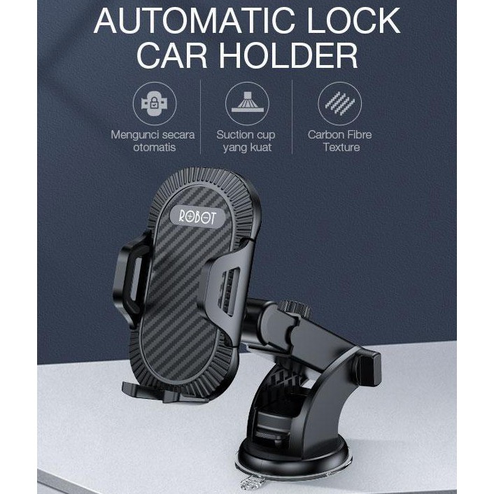 Car Holder Mobil Universal ROBOT Suction Cup Automatic Lock 360 RT-CH12 - ORI ROBOT